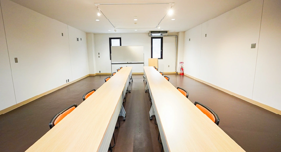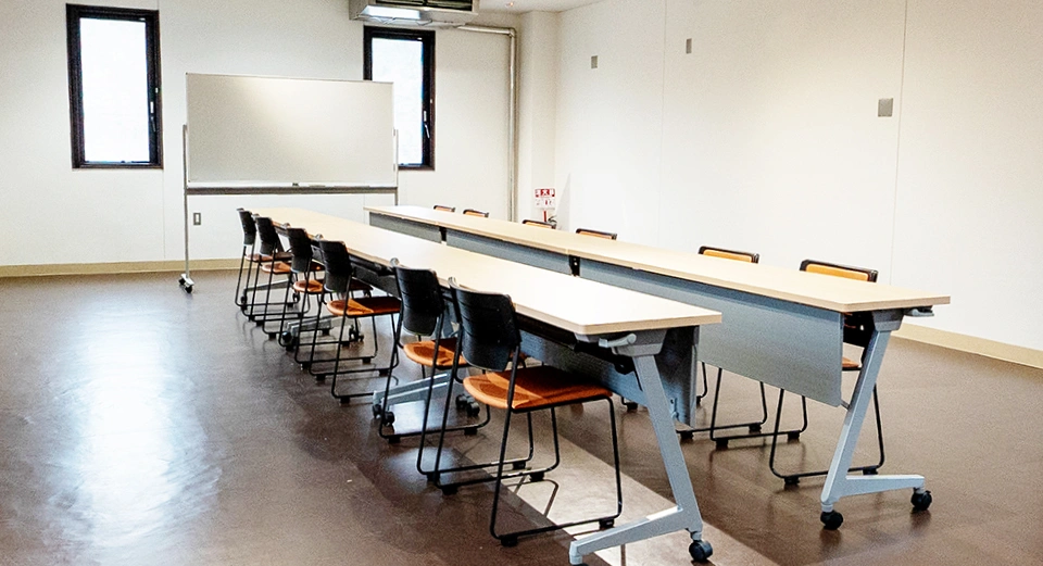 貸出可能設備:3人がけ長机10個・椅子20脚・展示パネル10枚